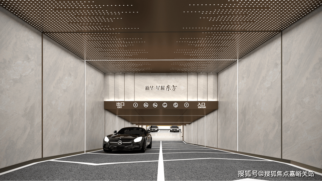 入口对行人、灵活车进行优化分流,保障业从平安;而地面泊车位,便利参不雅者、业从等姑且泊车的需求。别的正在车库上,项目还打破了常规地库的枯燥、昏暗。间接将豪车专属的星空顶搬入了地库里。从车行驶入地库的那一刻起头,一场名为“弘大”的归家之旅就起头了。通道入口,顶部文雅的星空放射灯,璀璨,搭配两侧的高级铺面材质,尽显奢华气质。