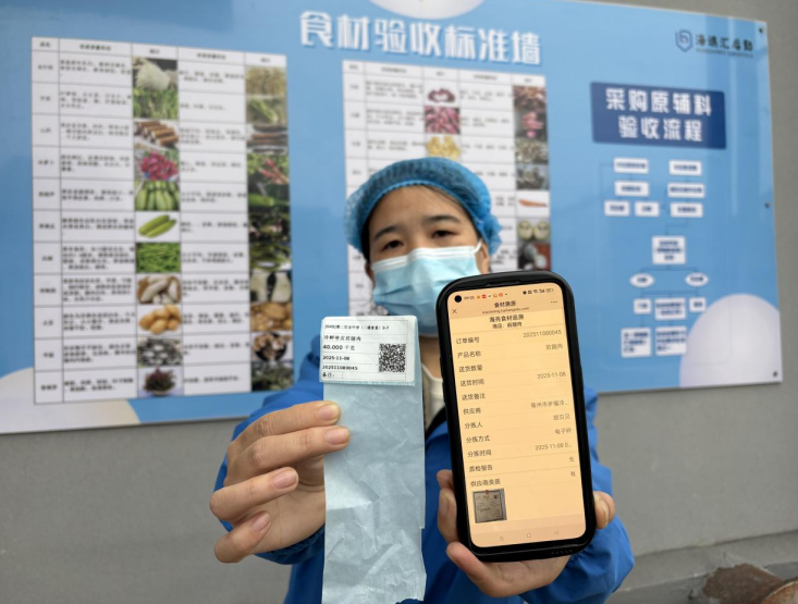 “今天芋头4吨、前腿肉2。8吨,西蓝花别忘削根!”11月7日凌晨,喇叭里传出粗粝的亳州方言,分拣员刘军把最初一筐西红柿推上流水线。扫码枪一闪,打印机里当即蹦出一张2cm×4cm的贴纸:品名、规格、分量、二维码,像给每块肉、每份菜颁布“身份证”。“若是是手写单,字潦草就容易发错货;现正在扫码枪‘滴’一声,系统间接告诉我要拣几斤几两,错不了!”刘军抹了把汗,手套上沾着泥,眼睛却亮得像灯胆。“嘀——”一声轻响,仓库办理员胡贝贝掏出手机,瞄准亳州二中订制的“前腿肉”二维码——屏幕霎时弹出:供应商、动检号、铅汞检测成果……“数据一跳出来,肉就像被X光扫过,谁还敢‘混水摸鱼’?”她说。这枚小小的标签,就像食材的“数字护照”,承载着从种植、采购、检测、分拣到配送的每一步可托消息。系统更取“票证推”平台深度对接,确保每一张二维码背后,都联系关系着的供应商天分取权势巨子检测演讲。“平安,不只要看得见,还要摸得着、查获得。”一位工做人员边扫码边笑着说,“现正在连土豆和西红柿都有‘身份证’了!”校方用餐担任人只需正在“亳州海谯汇”微信小法式上悄悄一点,订单便霎时中转系统后台。随后,系统“兵分两”:一从动生成各类食材订单二维码,精准推送给对应供应商,指点其高效备货;另一则同步至分拣核心,将需求为智能分拣秤上的清晰指令。亳州五中食堂担任人戴成成说,这种新模式大大提拔了学校的食材配送效率,并且质量可溯源,相当于帮帮学校建起了一道食物平安的防地。